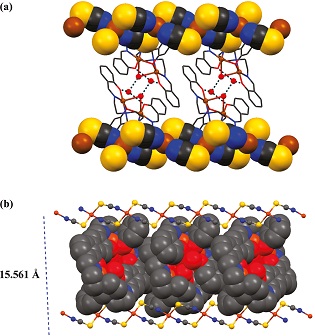 (a) The 1D anionic chains in a spacefill model (b) View of the [CuII4] units in a face-to-face orientation in spacefill representation within [Cu(NCS)2]n chains.